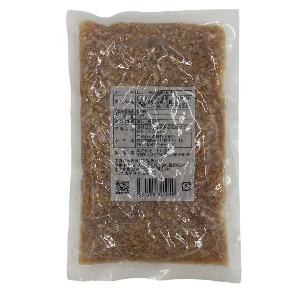原材料:しょうが(宮崎県産)、漬け原材料〔醤油、食塩、砂糖、米酢、昆布だし、米黒酢〕(一部に小麦・大豆を含む)