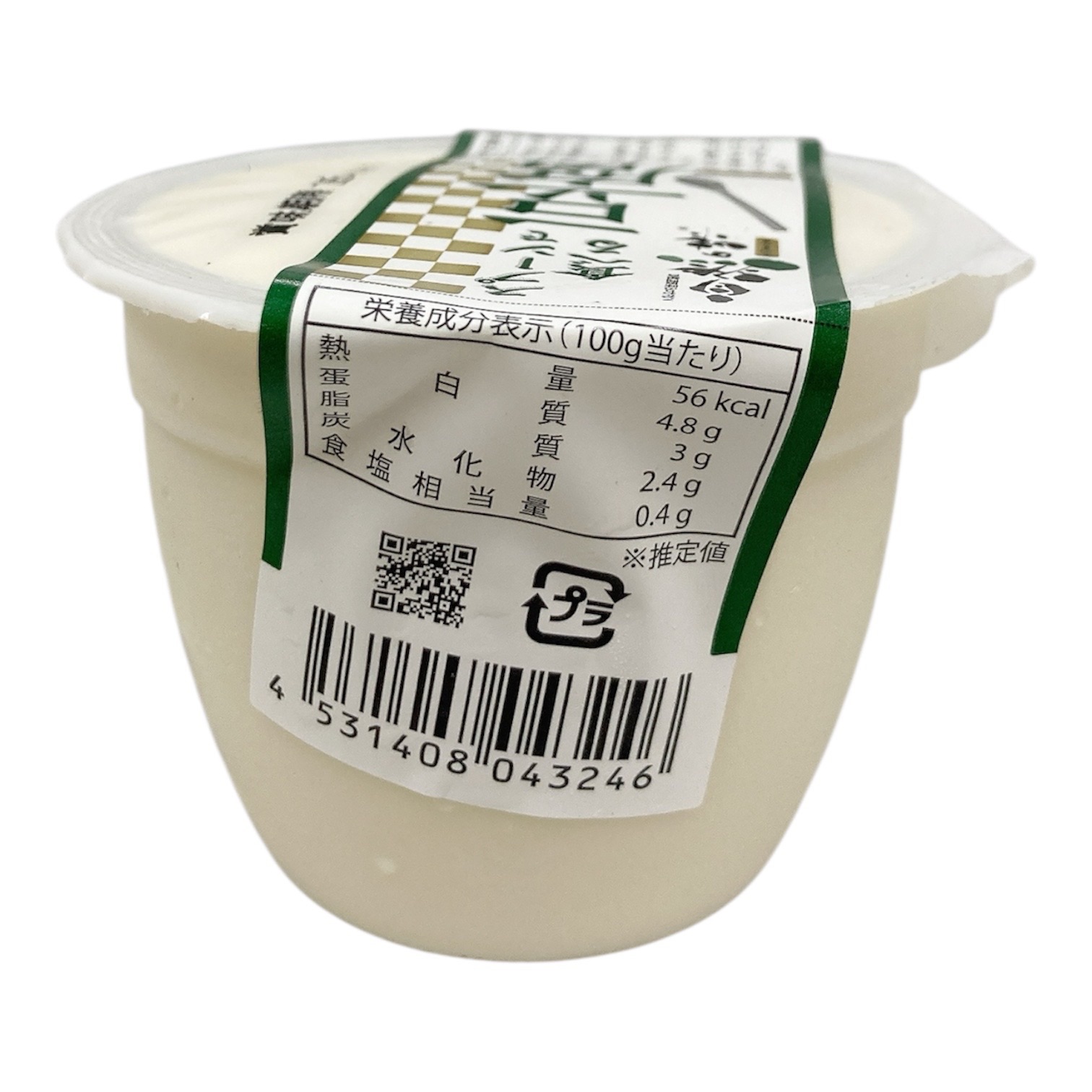 国産大豆(北海道産「秋田キタムスメ」と佐賀県産「フクユタカ」)を使用し、駿河湾の海洋深層水に含まれる塩化マグネシウム成分で固めた、なめらかな充填豆腐です。